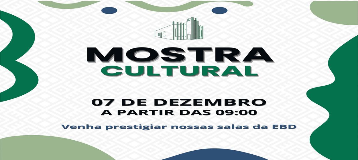 A Mostra Cultural da Escola Bíblica Dominical é um evento de troca e valorização do aprendizado. Cada sala apresentará aos demais alunos os ensinamentos, projetos e descobertas bíblicas que marcaram seu ano letivo, criando um ambiente de compartilhamento e inspiração mútua.